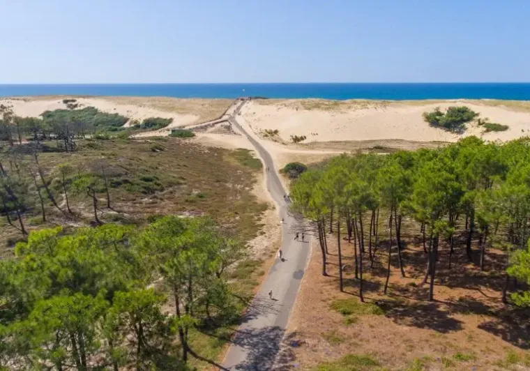 La Vélodyssée entre La Rochelle et Arcachon offre un itinéraire superbe à travers les marais, les forêts de pins et les plages. Facile et bien balisée, elle longe l'océan et permet de découvrir la richesse naturelle et le patrimoine du littoral atlantique.