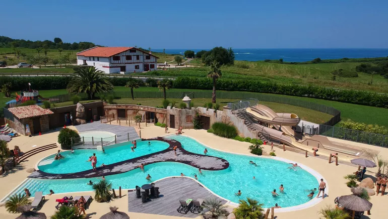 Dans un domaine paysagé de 10 ha, le camping Eskualduna vous propose 330 emplacements herbeux et ombragés. Vous apprécierez le nouvel espace aquatique de 2000m2 avec piscines chauffées, rivière à contre-courant et 4 toboggans. Des cours d'aquagym, water-polo, solarium sont proposés ainsi que des animations quotidiennes et des soirées spectacles. Des espaces multisports (foot, hand, volley, pelote basque,...) sont à votre disposition. Sont spécialement bienvenues les personnes handicapées pour qui tout est fait ici (label tourisme et handicap), et les amateurs de baignades, à quelques minutes de la plage (navette à l'entrée du camping en saison).