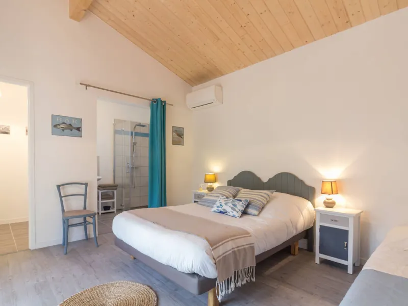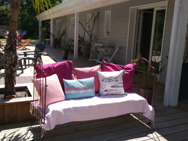 Située à la pointe du Médoc, entre dune et forêt de pins, à 300 mètres de l'océan, Sophie vous accueille dans sa maison d'hôtes à ossature bois. Aménagée dans une dépendance de la maison principale, les trois chambres de 22 m2 chacune disposent d'un accès entièrement indépendant et d'une terrasse privée à l'ombre des pins. Elles sont équipées d'une salle d'eau avec douche à l'italienne ouverte sur la chambre, d'un wc séparé et d'une climatisation réversible. Décorées avec soins, vous apprécierez leur atmosphère personnalisée à l'esprit nature, bord de mer et romantique. Le jardin vous offrira d'agréables moments de détente.Les petits déjeuners copieux seront servis dans la salle à manger ou sur la terrasse selon la saison.
