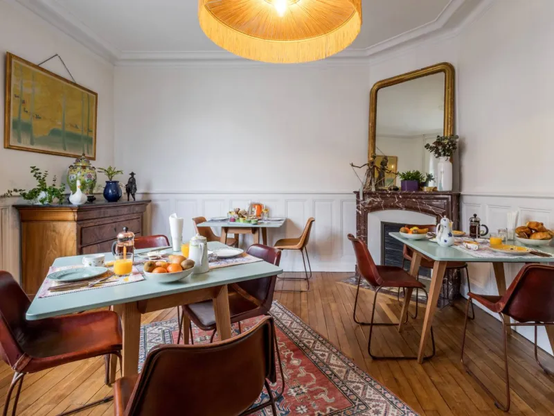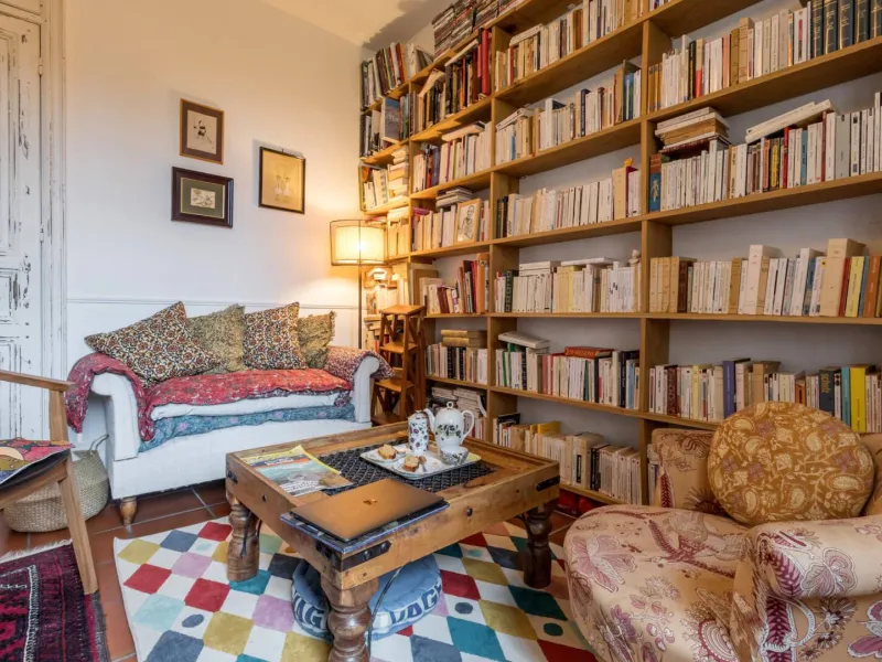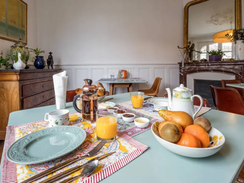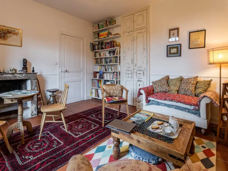 Au rez-de-chaussée : bibliothèque et séjour où est servi le petit-déjeuner maison (gâteaux, confitures, yaourts).