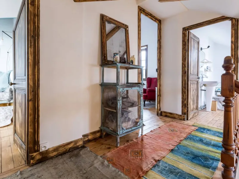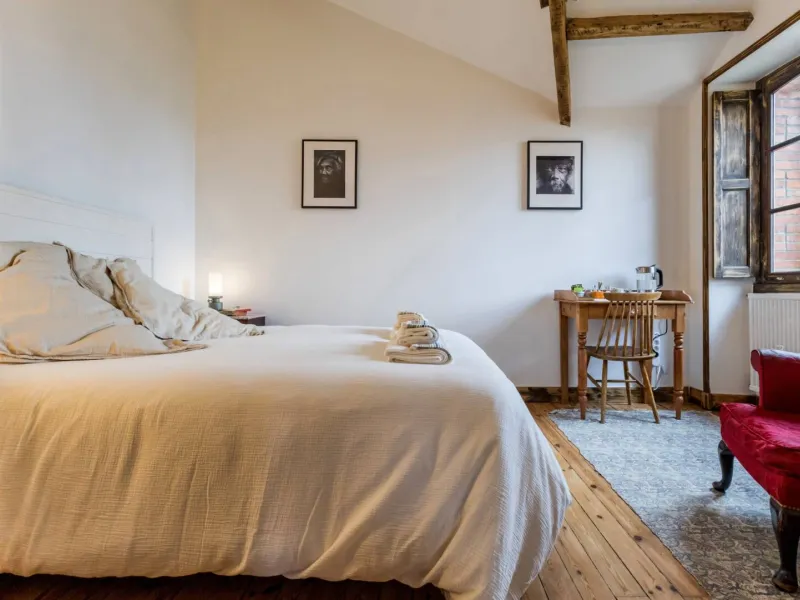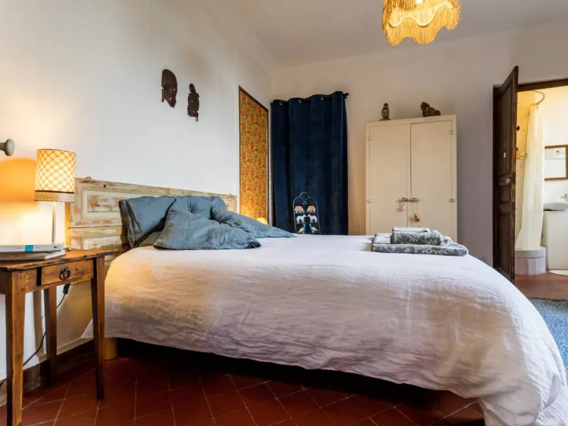 Au 2ème étage : 1 chambre d'inspiration romanesque (lit 160x200 + méridienne 80x200) avec salle d'eau/wc privatifs, 1 chambre d'inspiration indianisante (lit 160x200) avec petite salle d'eau/wc privatifs et 1 petite chambre (lits gigognes 80x200) pouvant servir d'extension à l'une des 2 précédentes chambres (sur demande auprès du propriétaire).