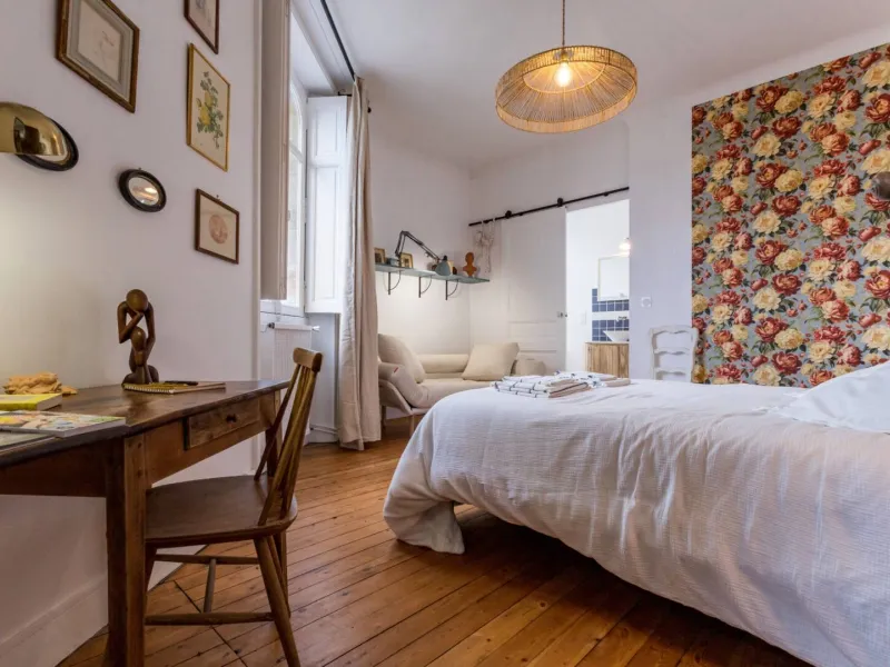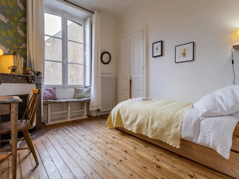 Au 3ème étage sous combles : 1 suite familiale composée d'1 chambre (lit 140x190) et d'1 petite chambre mansardée (lit 90x190 + lit enfant 70x170) partageant une salle de bains/wc.