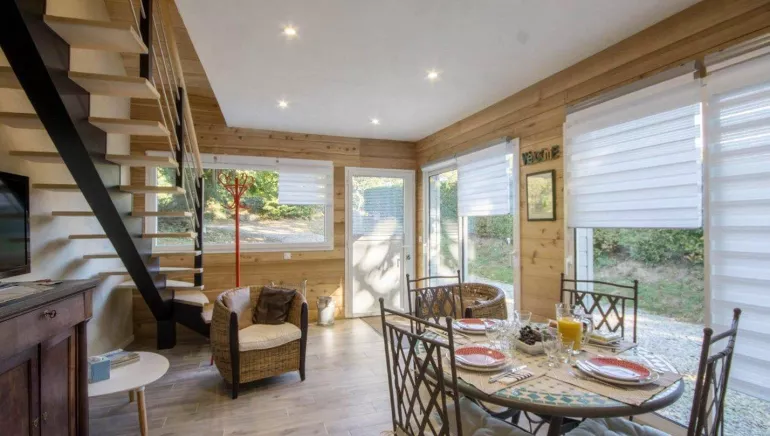 Ce gîte offre une jolie pièce de vie, plein de charme avec la pierre apparente.