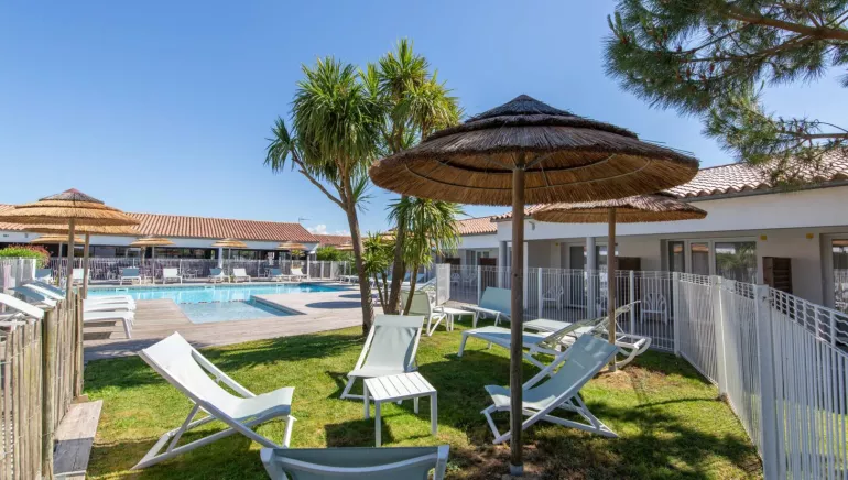 Séjournez en toute convivialité à l’Hôtel de Ré***, The Originals Residence, cet hôtel-résidence écologique de plain pied au sud de l’île de Ré : 10 chambres et 22 appartements autour d'une piscine chauffée et d'un joli jardin avec une aire de jeux.