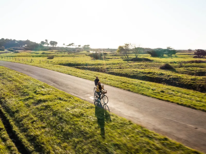Boucle vélo de 20,3 km au départ de Les Moutiers-en-Retz. Bienvenue dans le pays de Retz… ce territoire au sud de la Loire-Atlantique offre des paysages uniques, entre océan, marais et bocage. Respirez l’air iodé, admirez le panorama et pédalez. Les paysages défilent : bourg des Moutiers, Marais de Lyarne, marais salants, plages, port du Collet avant d’arriver à Villeneuve et sur le chemin du retour, dégustation d’huîtres à la Bernerie, ça vous tente ? Donc au programme… découverte de la richesse du patrimoine et de la gentillesse des Hommes qui façonnent cette destination. ​