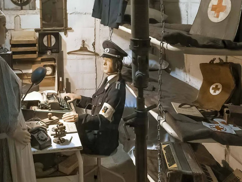 Les 20 pièces de ce rare blockhaus hôpital de 350 m², restées dans leur exceptionnel état d'origine depuis 1943, ont été soigneusement rééquipées avec des objets de la vie quotidienne sous l'Occupation.