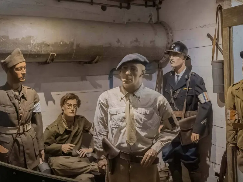 La Deuxième Guerre Mondiale en Vendée. Visite unique et immersive dans un authentique blockhaus de 350m² pour un voyage dans le temps palpitant !Découvrez l'histoire des Sables d'Olonne de 1939 à 1945 à travers des panneaux explicatifs illustrées, un film pédagogique et des scènes grandeur nature avec mannequins tous en tenue d'époque.