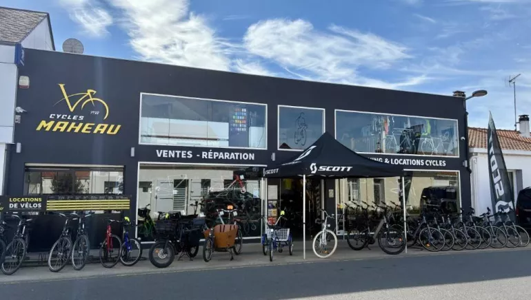 Depuis 1987, Cycles Maheau, à 300 m de l’église de Saint-Jean-de-Monts, est votre expert en vente, location et réparation de vélos et scooters. Spécialistes du cycle, ils offrent un service haut de gamme avec étude posturale en 3D (ID Match). Marque "Accueil Vélo", ils conseillent aussi sur les chaussures de running. Passion et savoir-faire au service des sportifs !