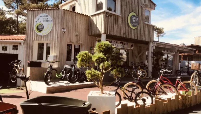 Cyclo-Trott est labellisé Vélodyssée et Accueil Vélo, et propose à la location la plus large gamme de vélos : VTC, VTT, tandems, vélos électriques VTT électriques, vélos enfants électriques, cargo électriques, beach électriques, tricycles, remorques enfants, scooters 50 cc, 125 cc, motos et rosalies.