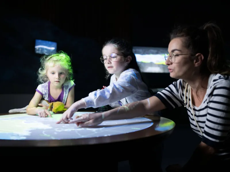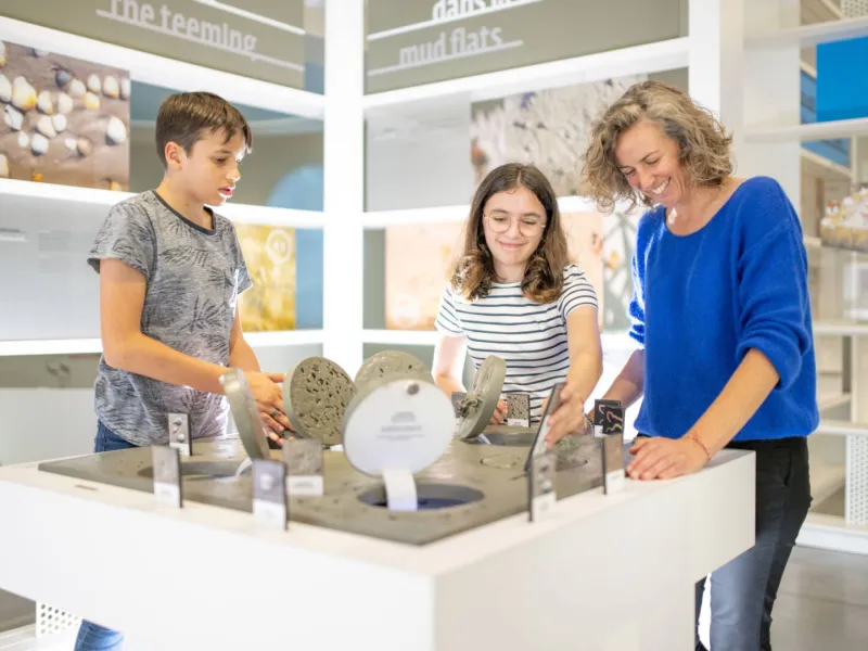 Chaque espace est conçu pour rendre les notions accessibles, quel que soit l’âge. Les dispositifs interactifs permettent de comprendre les équilibres de l’estuaire, son rôle écologique, ses usages passés et présents, ainsi que les transformations qu’il connaît. La découverte se fait de manière progressive, alternant temps de jeu, d’apprentissage et de contemplation.